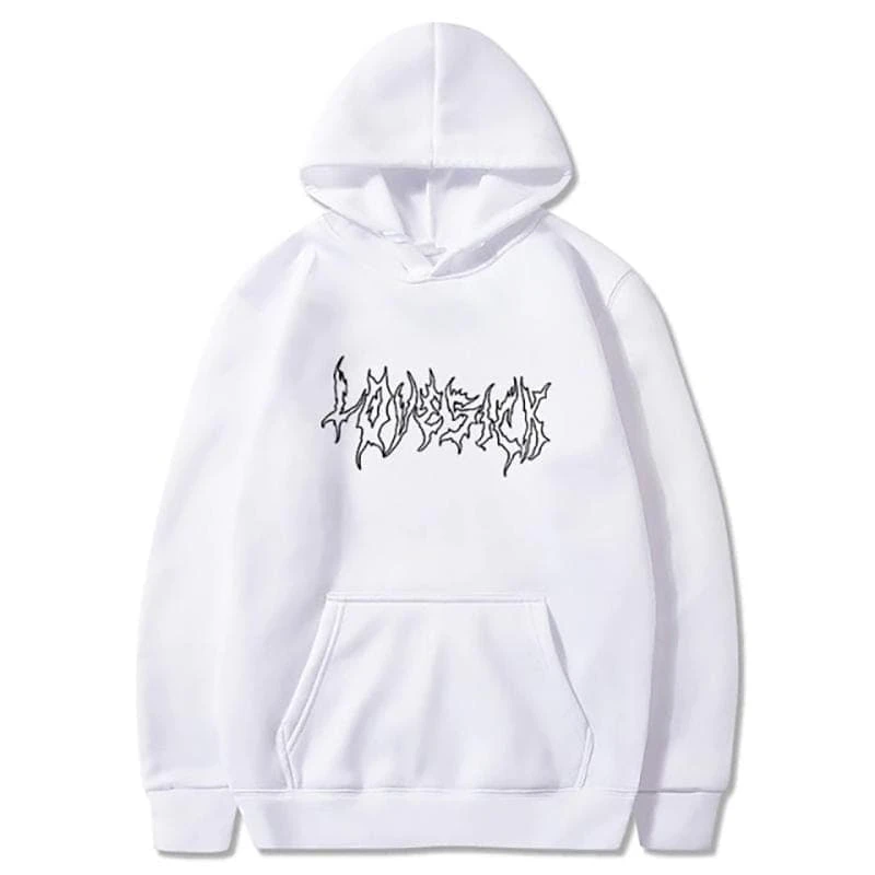 A toast to new and long-lost memories. This slick hoodie is made of slouchy, thick jerseys for a relaxed fit. Lovesick is printed in the ghoulish font on the chest. Luxurious yet comfortable, this loose hoodie will keep you warm through the most biting chills.