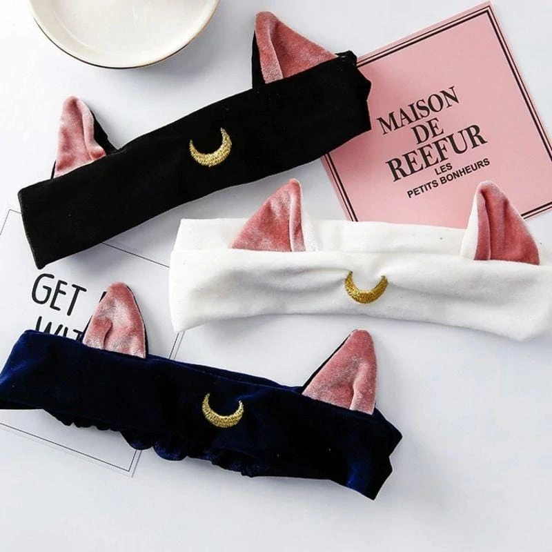Get frisky with this stylish Luna Cat Ear Headband featuring cute fluffy plush ears on the side with pink color inside. Adorned with the embroidered crescent moon. Feel cute and creepy at the same while washing your face or doing your make-up.