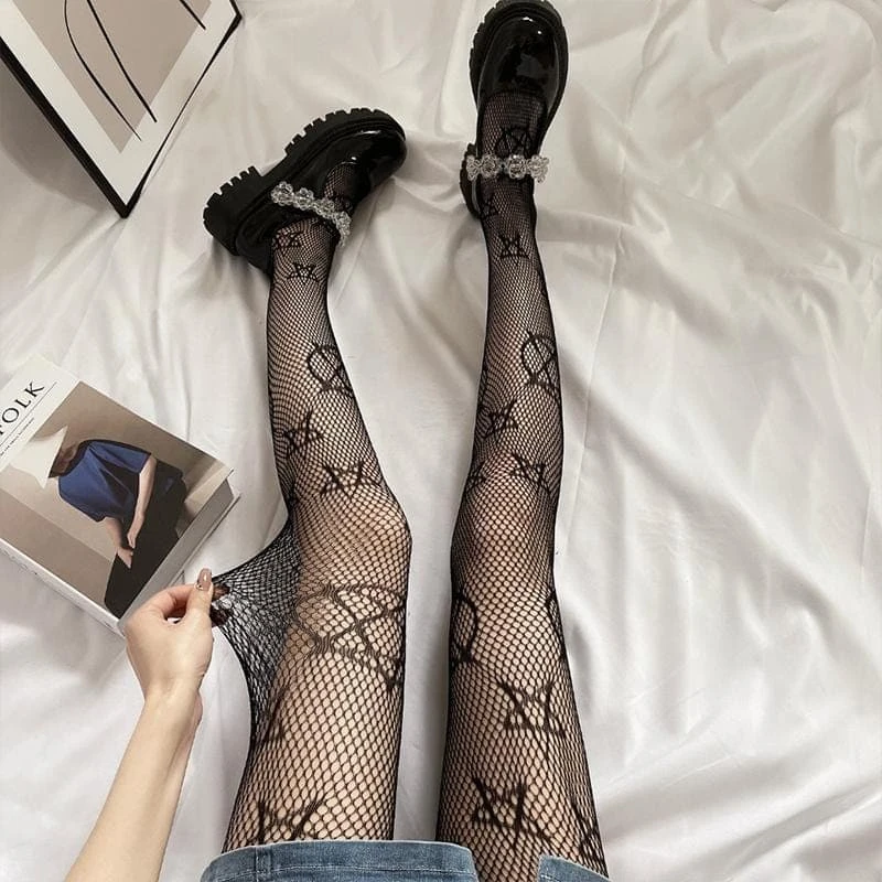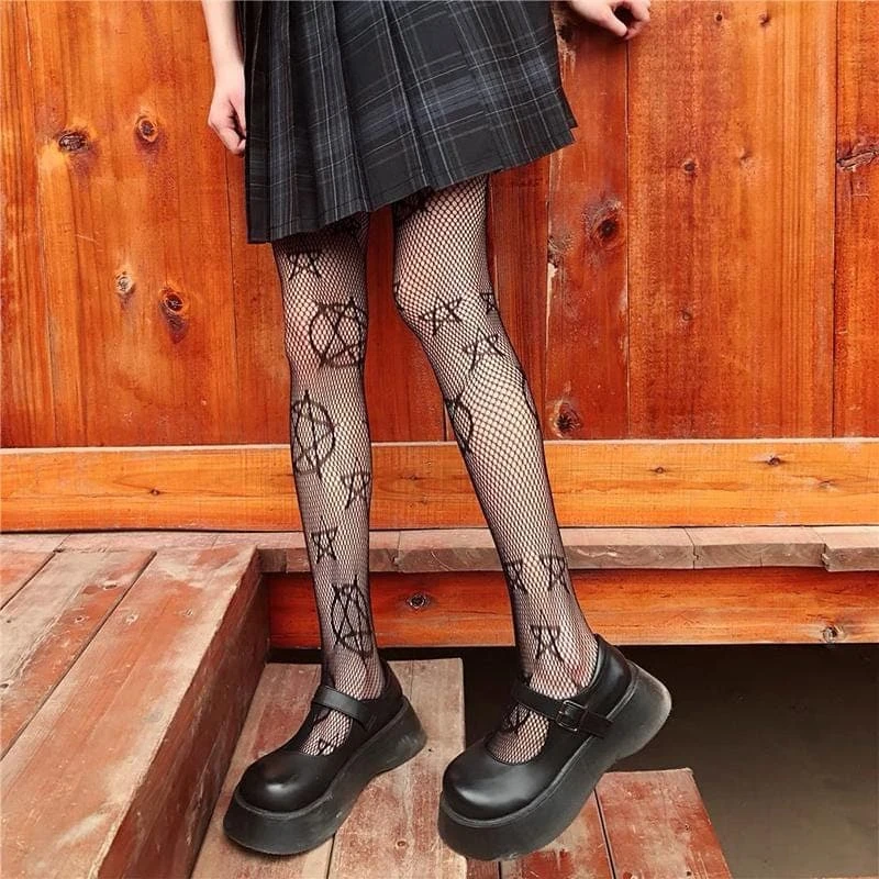 You’re a dark delight in these Magical Pentagram Fishnet Tights! Stop hearts and drop jaws in the sinfully soft construct, complete with pentagram detailing. Slip these statement tights under a mini skirt or pair of shorts to summon instant sultry spook to your look!