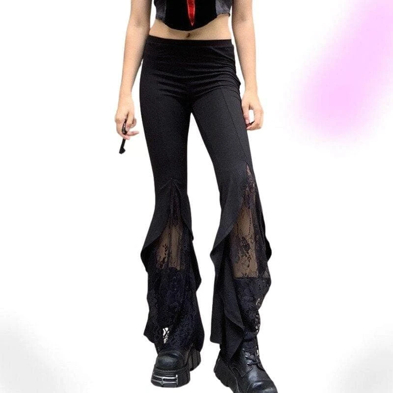 Be ready for any adventure in our Midnight Glam Lace Flare Pants. Super soft fabric that almost melts at the touch – with just the right amount of stretch, for the ultimate fit and comfort. Complete with cut-out detail with lace accents and extra flare. Elastic waistband. An essential piece – easy to wear and goes with anything!
