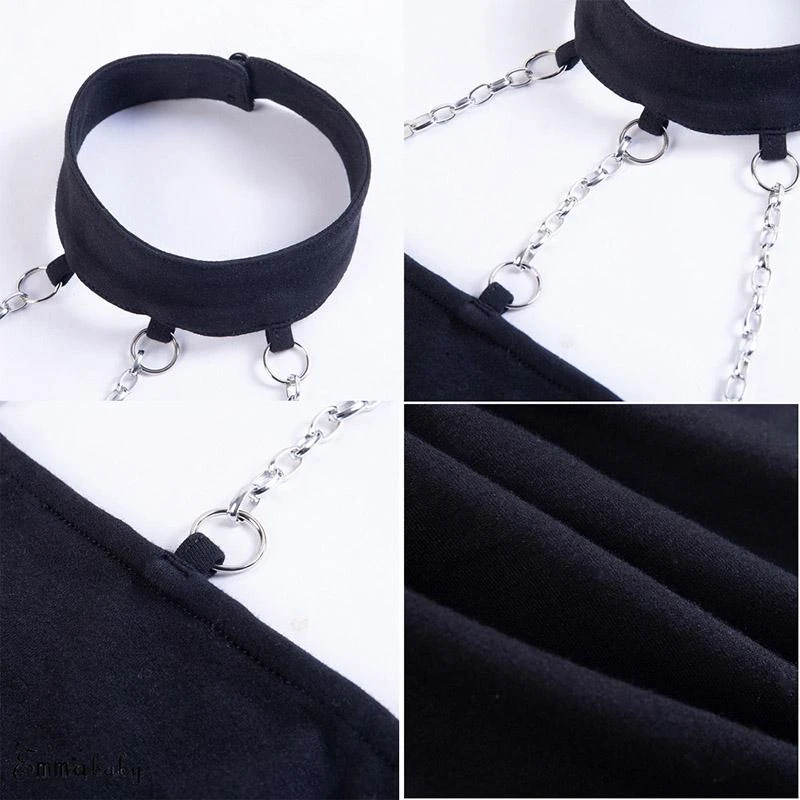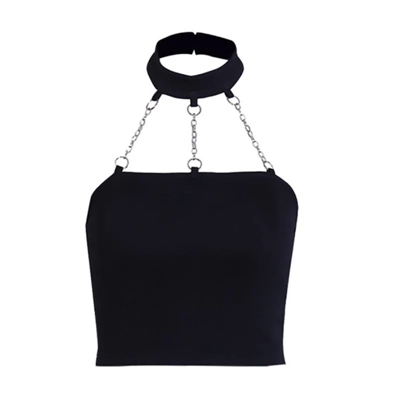 Midnight Summer Crop Top cuz sometimes you just need to get away from all the troubles you got. Make a memorable night out with this sexy sleeveless tank crop top featuring its badass link chain connecting the vest and collar.