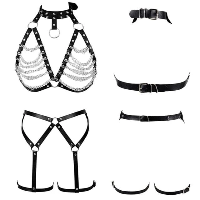 We have got the mistress chain harness for you, so you can be the domintrix that you always wanted to be. This harness is a set so you can adorn your upper and lower body with it, while those under your spell adore you for it.Â