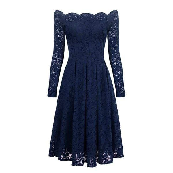 With lace work covering all, from the shoulder to the skirt, it is a blend of materials and has an off shoulder neckline. This dress is also available in three different shades. All the products we sell get quality tested.