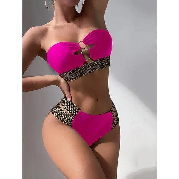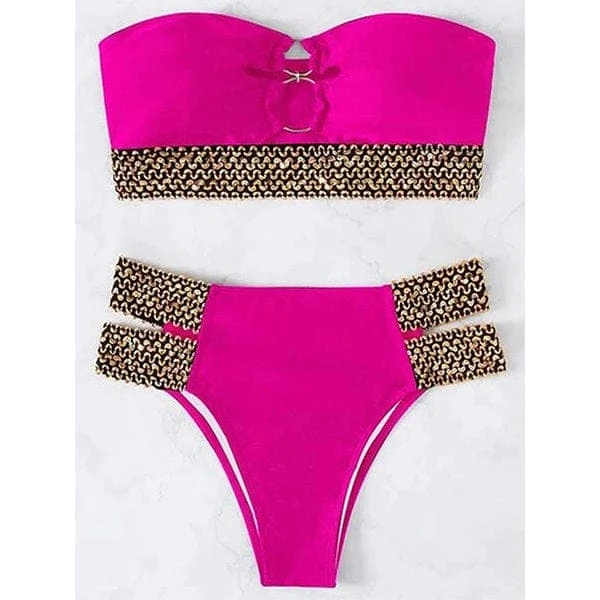 Slip into something sizzling with this sexy bandeau swimwear! This two-piece bathing suit comes complete with a flash belt that’ll make you feel irresistible on the beach! So get ready to look great and have more fun in the sun this summer!
