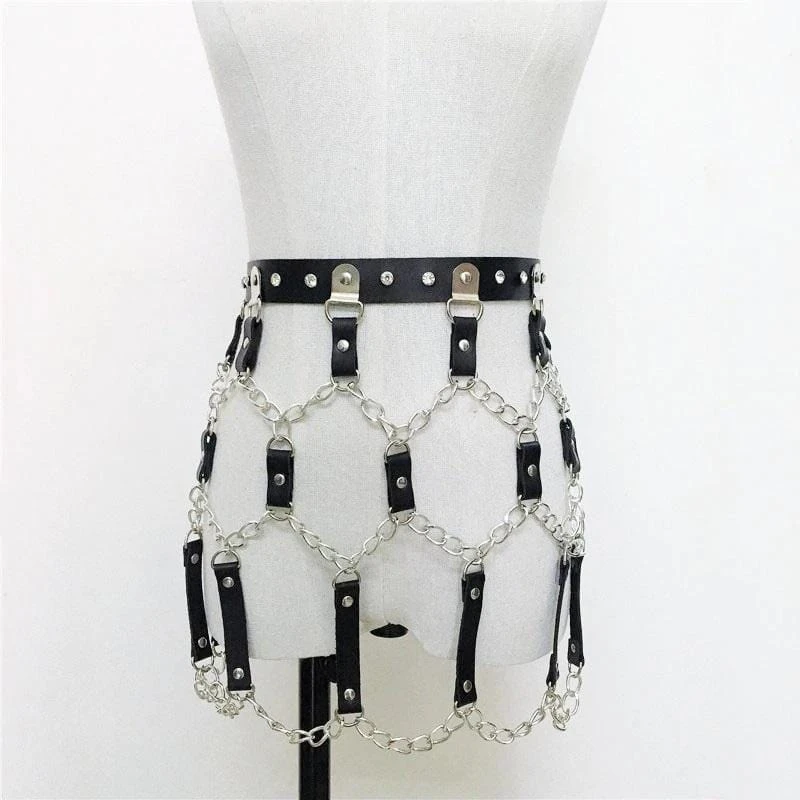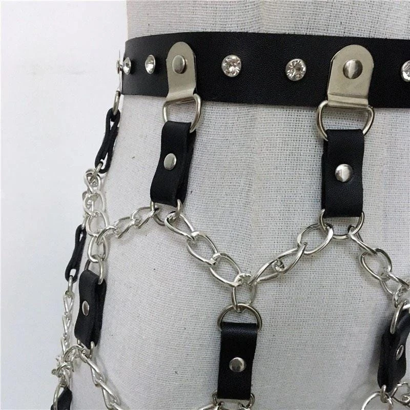 Night Rave Leather Harness Belt cuz you embrace your sexiness bb! This sexy faux leather harness belt features its link chained forming like a skirt showing off your badass party gal spirit.