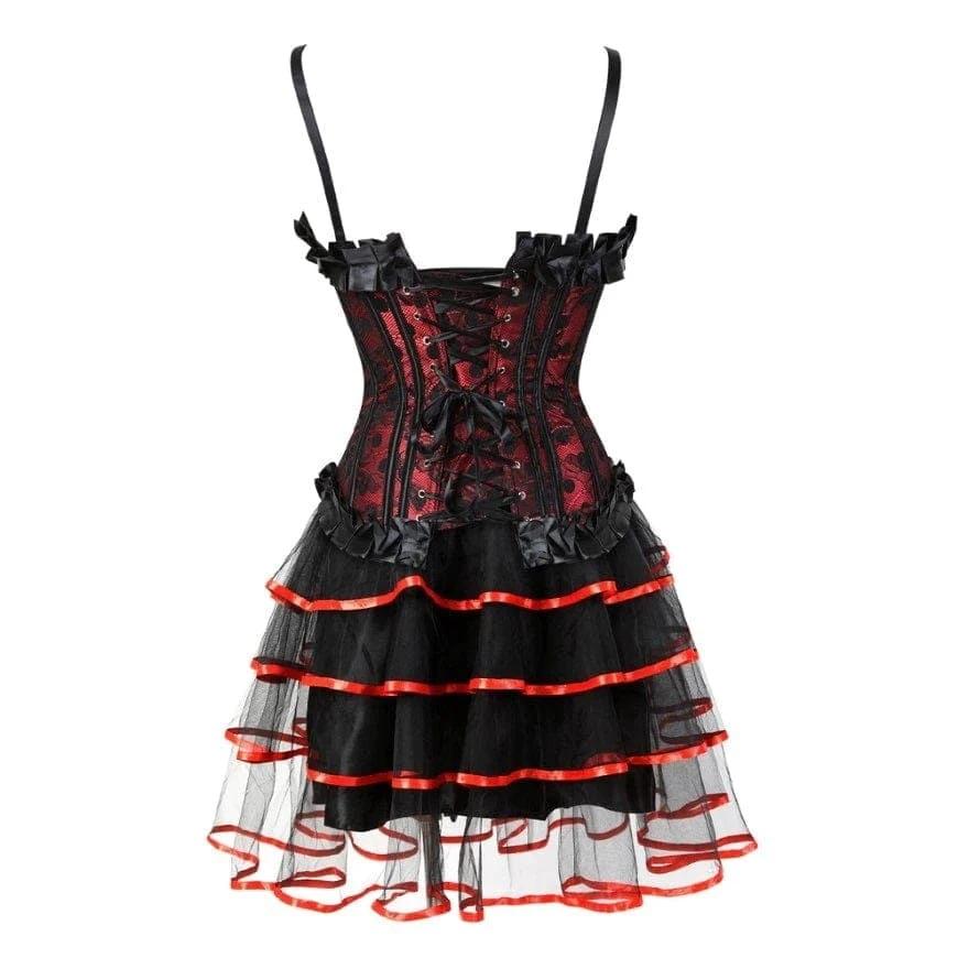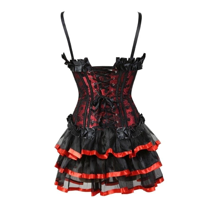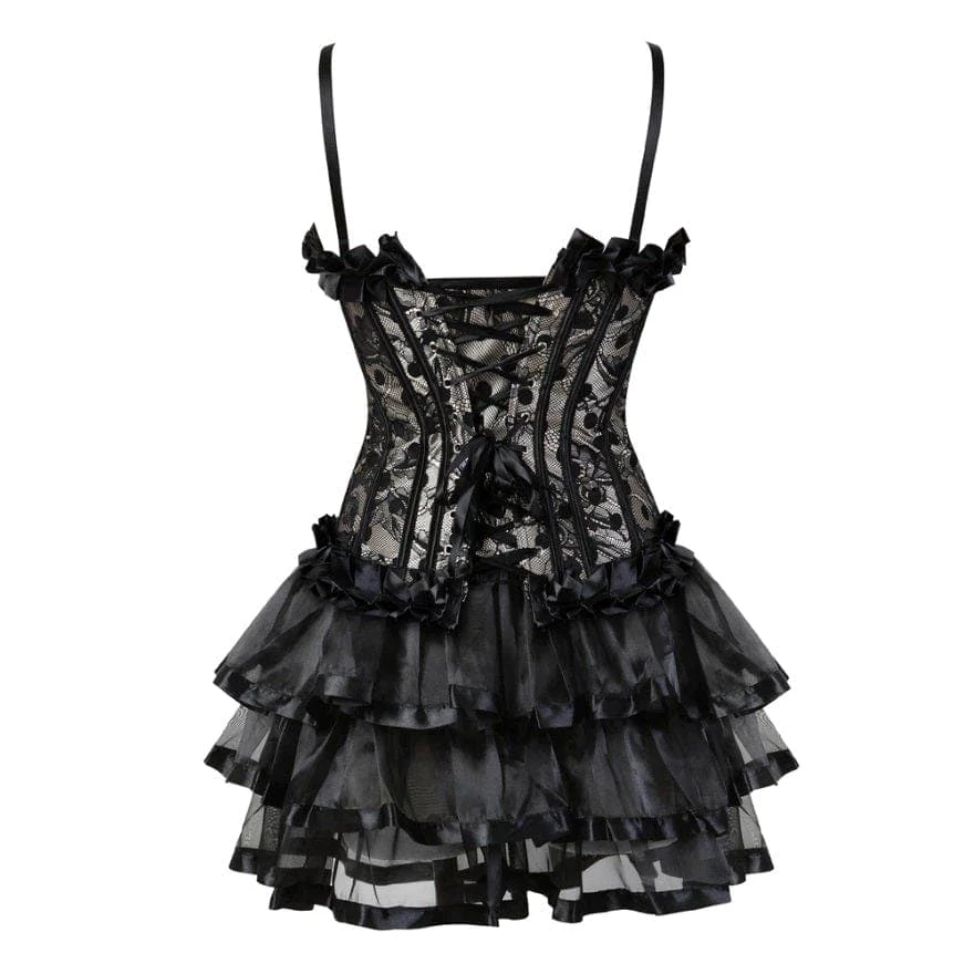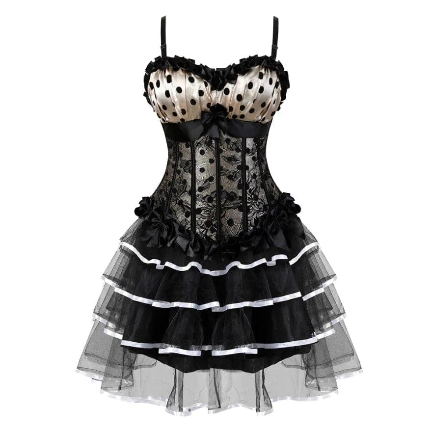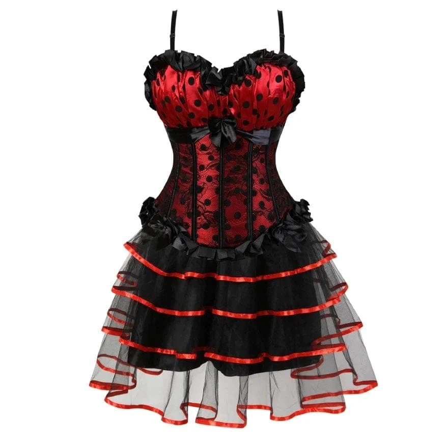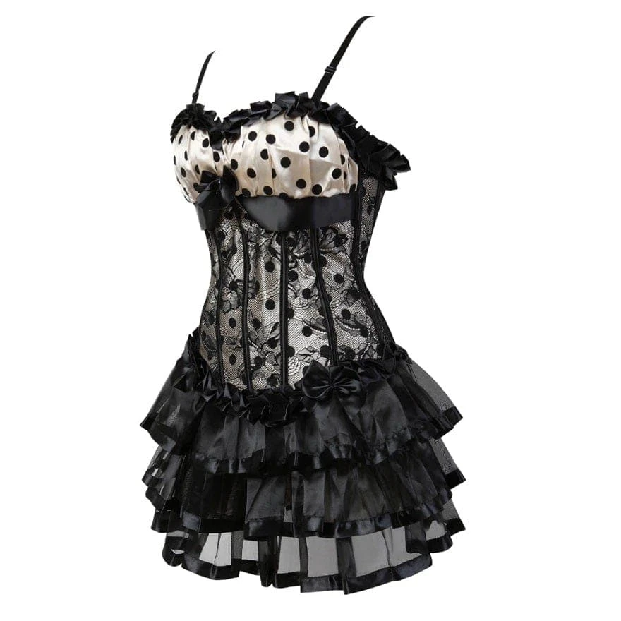 Polka Dot Overbust Corset brings the heat in this hot AF corset you’re about to start a riot with this sexy corset, adorned with a lace skirt, thong, and has a lace closure at the back.