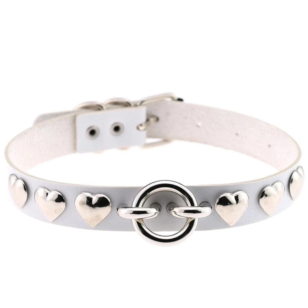 Punk in Love Choker cuz you’re a badass charming bb! Conquer em all in this gothic leather choker featuring its metallic hearts and o-ring design and it has an adjustable buckle strap.