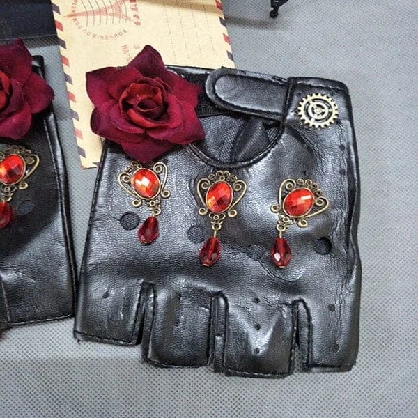 Add a sophisticated style to your look with these black fingerless gloves adorned with roses and crystals. Soft PU leather provides excellent comfort and warmth to your hands!Â