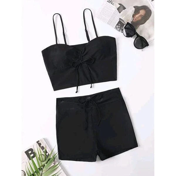 Don’t just make a splash at the beach, make a tidal wave with this stylish Rae High Waist Bikini Set! It’s got all the staples for a winning look–front adjustable drawstring for a customizable fit and padded for added support–plus it’s perfect for keeping your summer style on fleek! It’s the best beachwear for making waves!