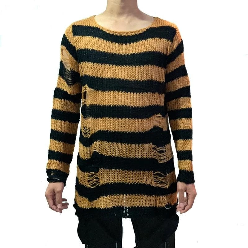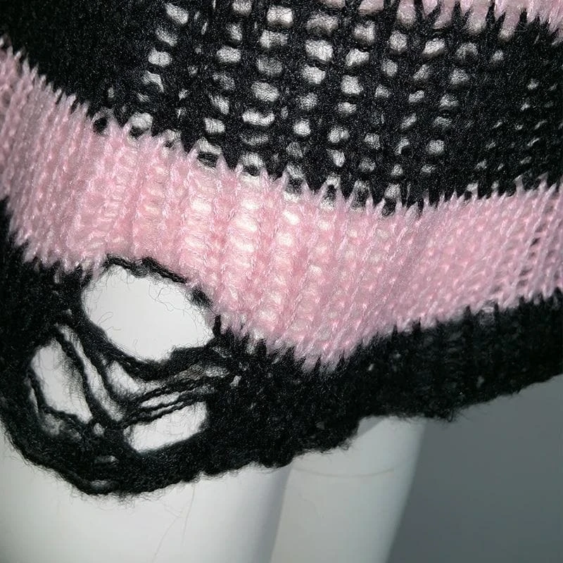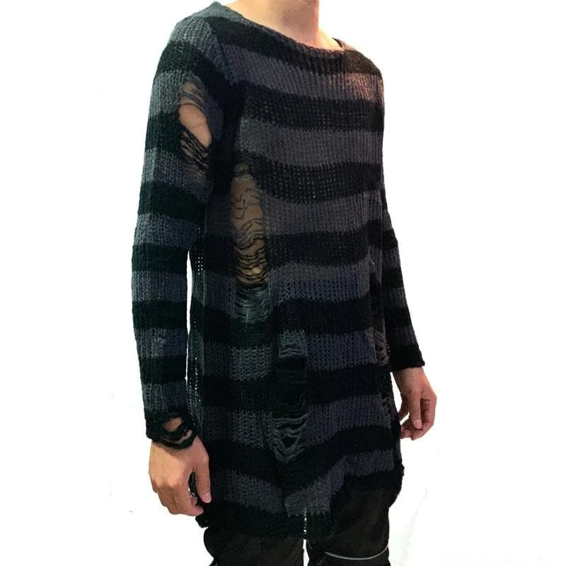 This pullover long sweater features knit construction with stretch and ripped design looks badass punk. The material is acrylic which is computer knitted and can be worn in summer because of its material. Go for this piece of outfit that you can literally match with your S.O.