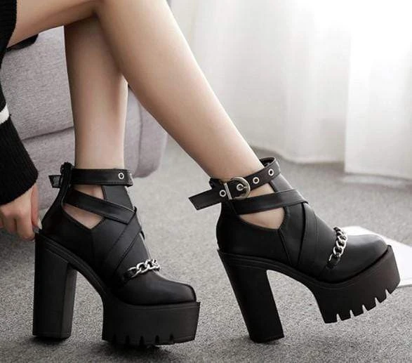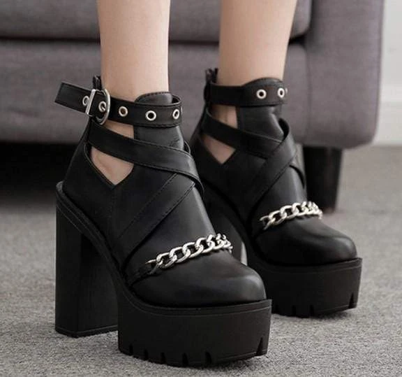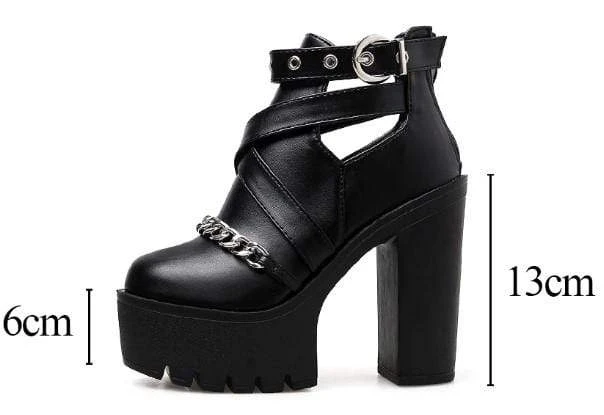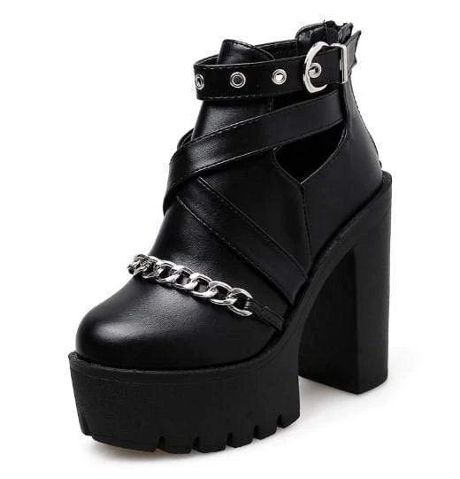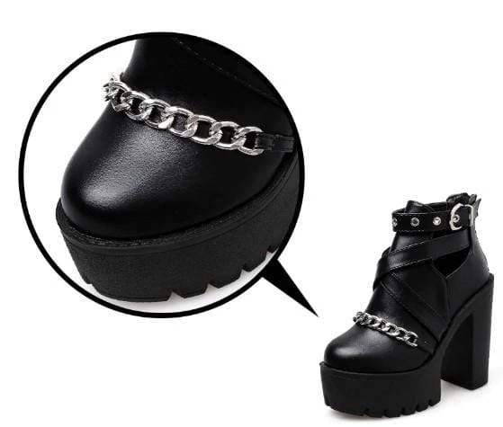 Retribution Chain Boots are the footwears of all the Barbies gone rogue. The PU and soft leathers will keep your feet soft comfy while you walk around looking like an absolute goddess of chaos. The chain decoration and criss crossed with the belt decoration, throw them on a beautiful skirt and top with a long shrug to make your complete look.Â