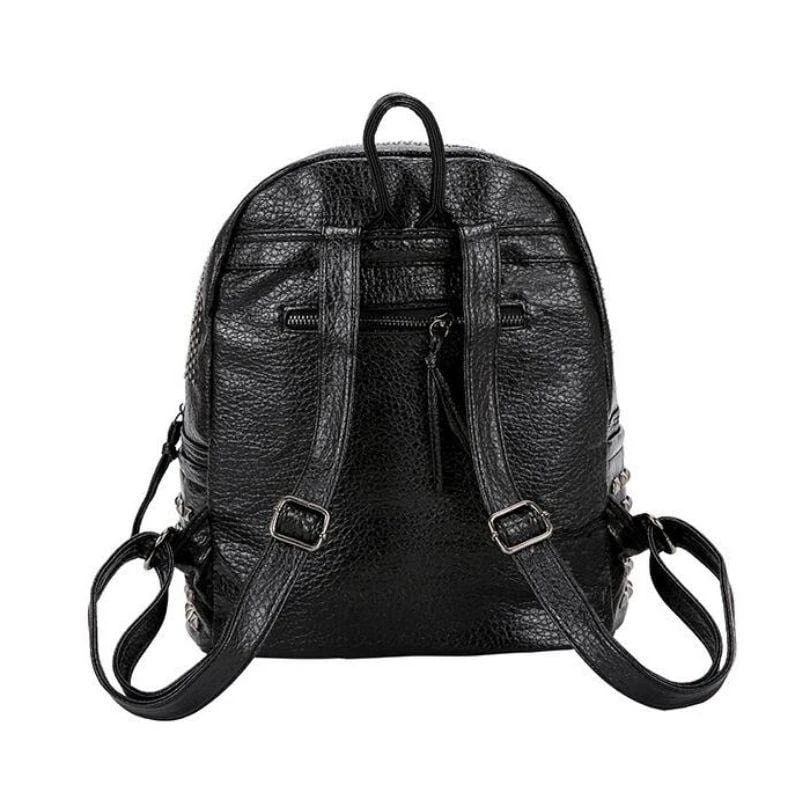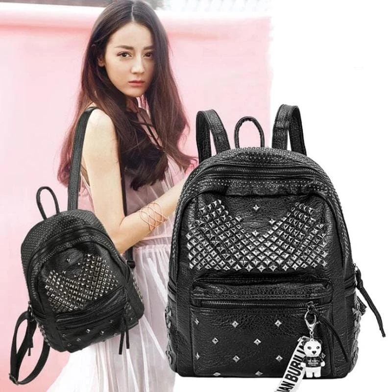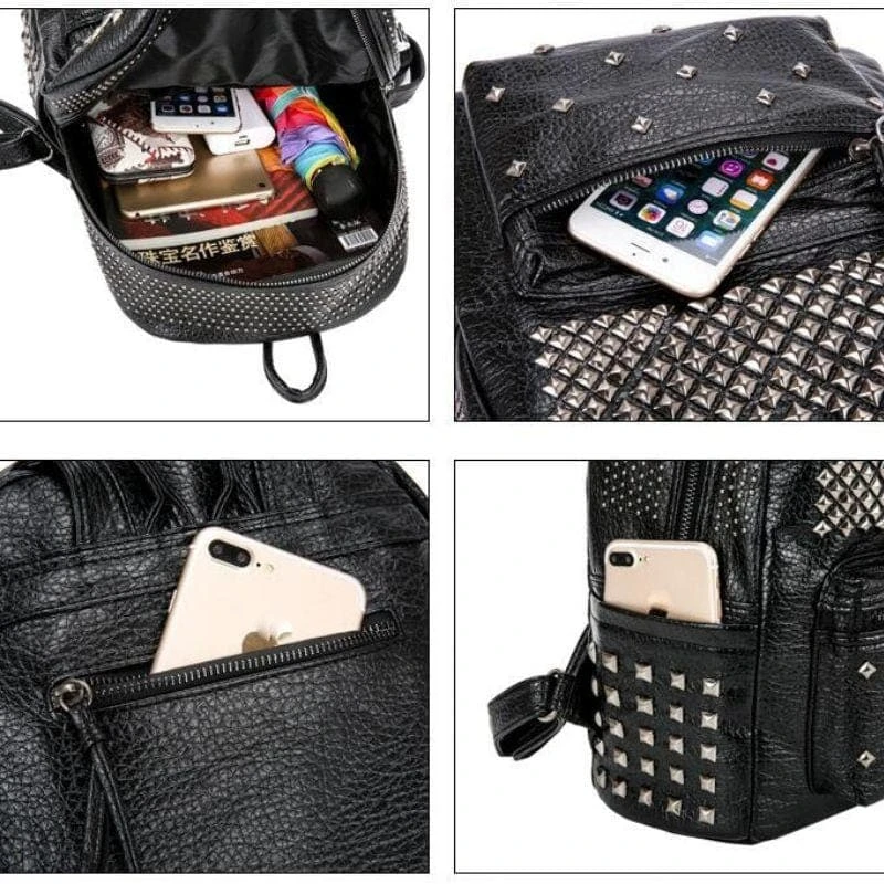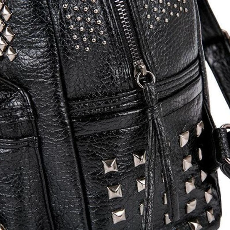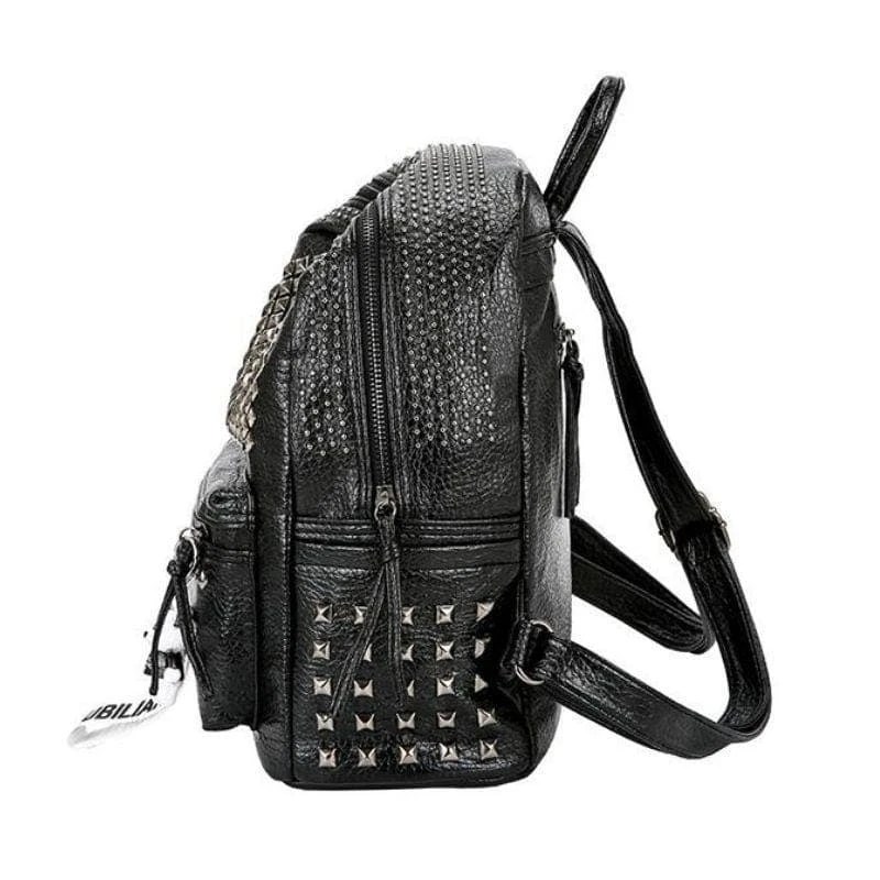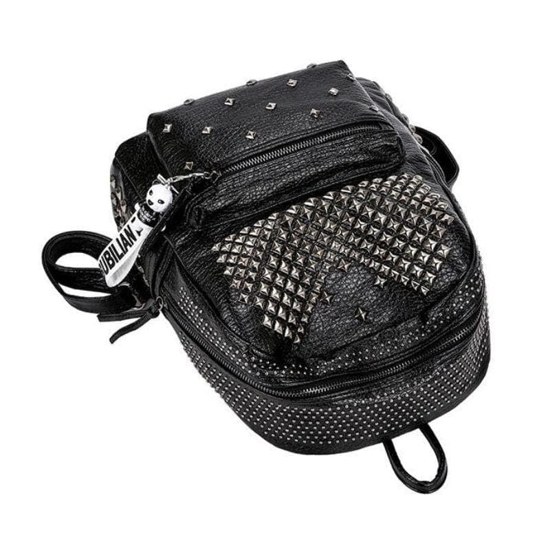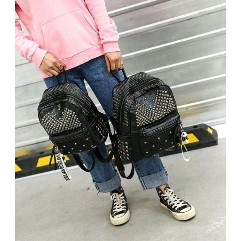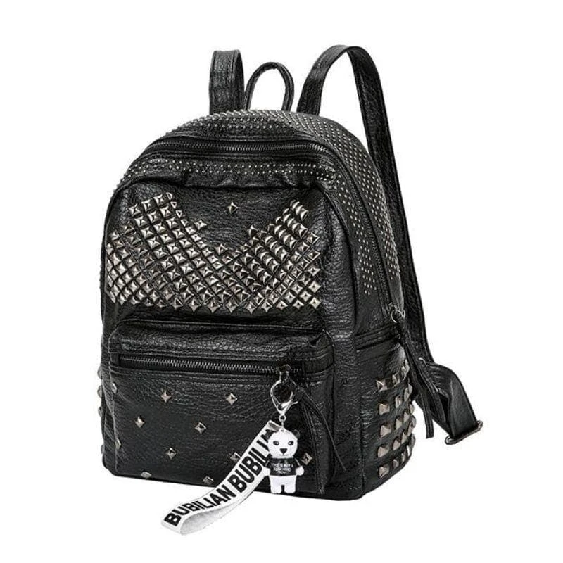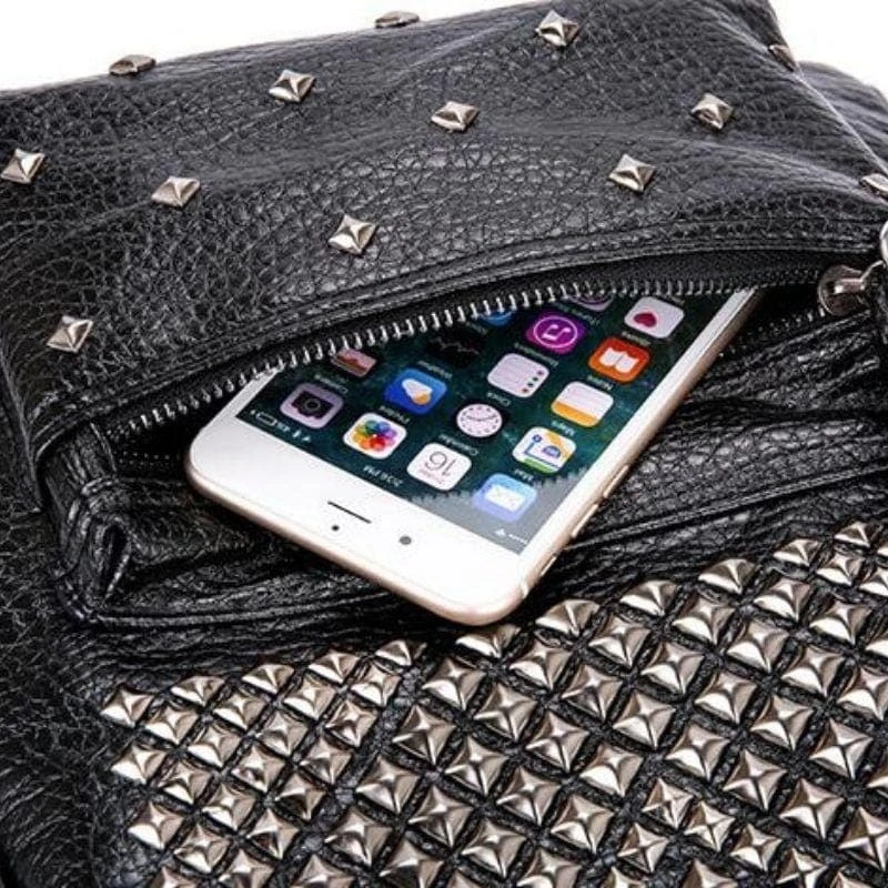 Be ready for whatever the dark lord demands with our ‘Rivets Overload Leather Backpack. Conjured using washed look faux leather and adjustable shoulder straps. The devil is in the details; fully lined with zip closure and overloaded with silver square rivets!