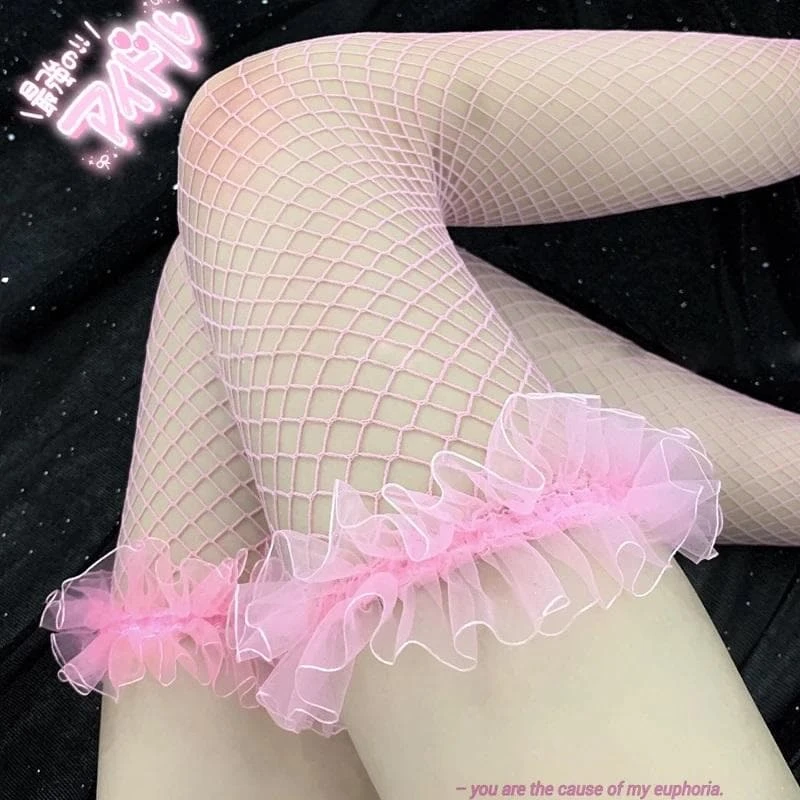 Be the Princess of Goths in these Sabrina Fishnet Stocking. Slip these cute lolita fishnet stocking under a mini skirt or pair of shorts to add a spoonful of spook to your look. Featuring statement ruffled lace to tease and please!