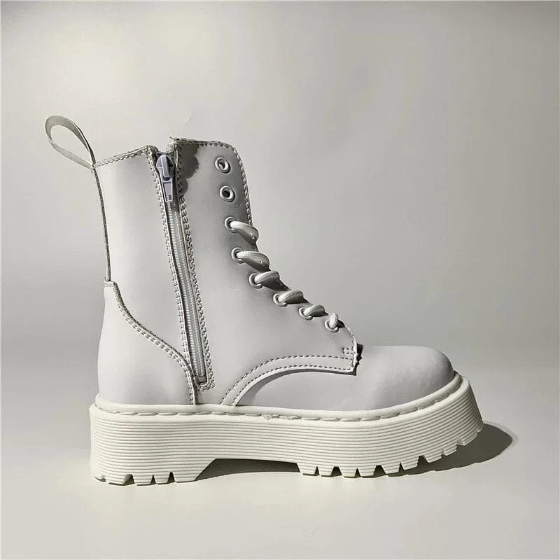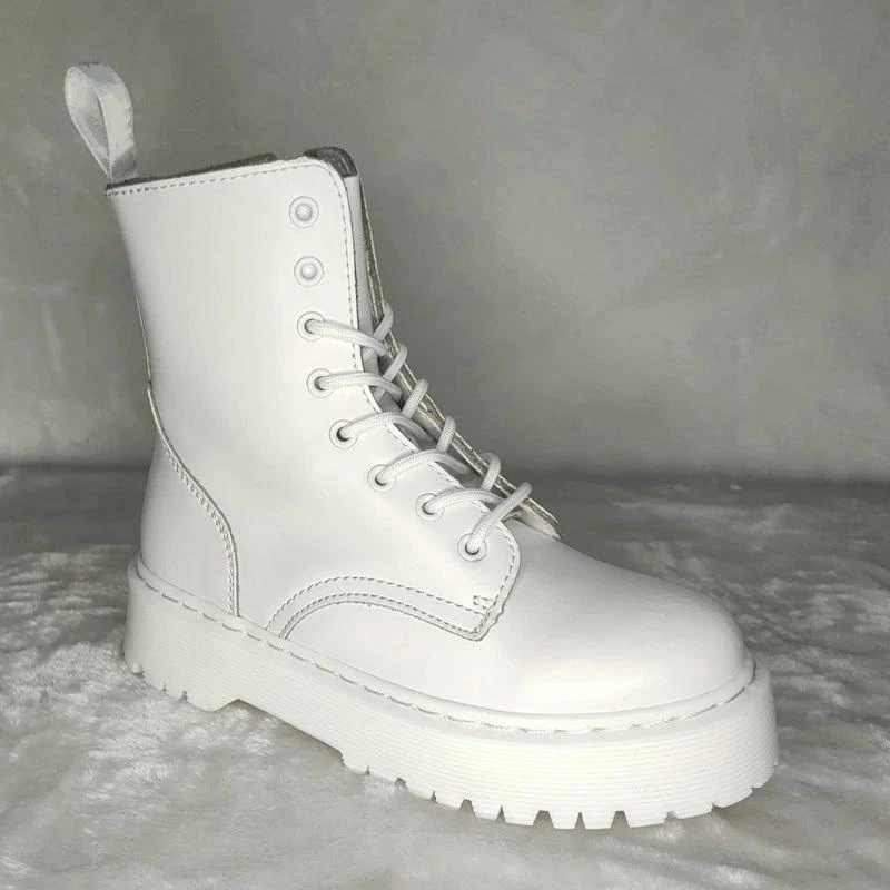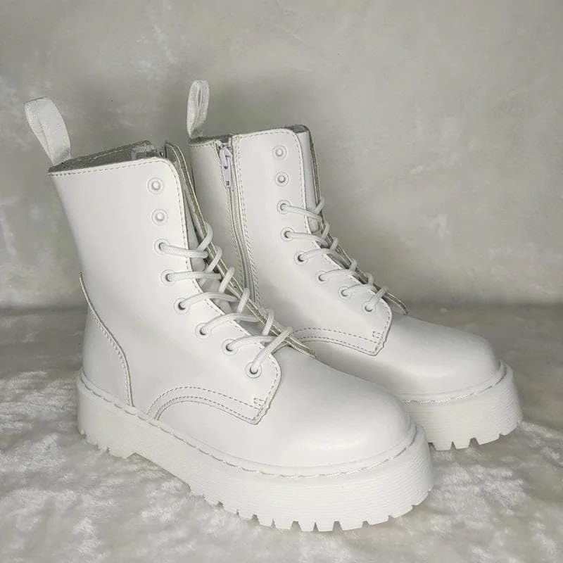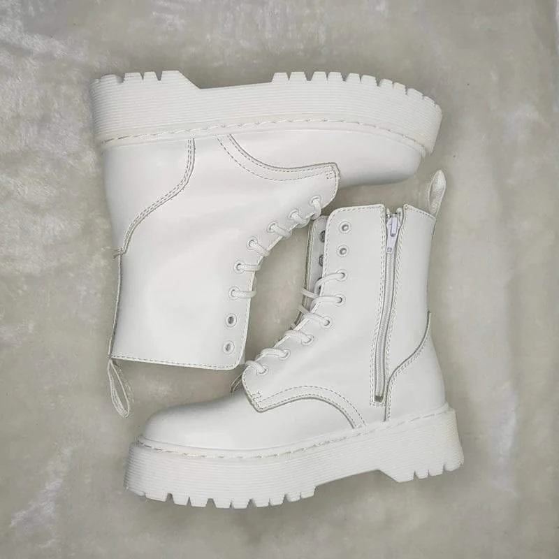 - The other one is pure white boots which have a closure type of side zipper and bootlaces.