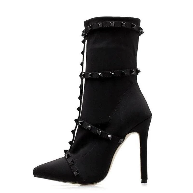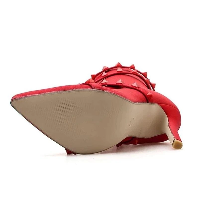 Turn up the heat on any outfit with these Sexy Rivet Cage Boots! These thin pointed high heels will compliment any outfit especially a badass theme get-up, it features a stylish design of rivet belt inclosing the boots.