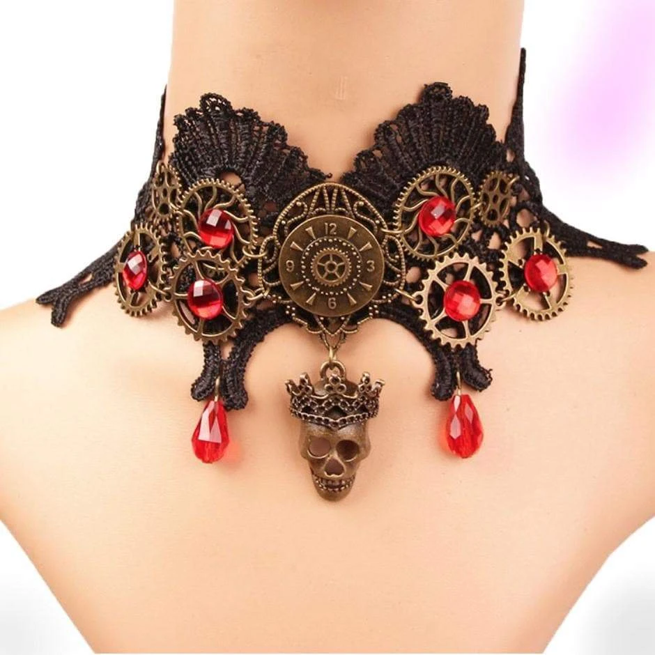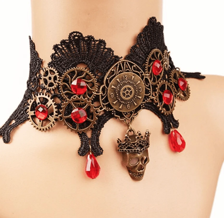 Most of our products are made with a range of Lace, rhinestone, Leather, Zinc alloy, faux feather, polyester and Glass. Please look at the description above for the specific Gothic accessories.