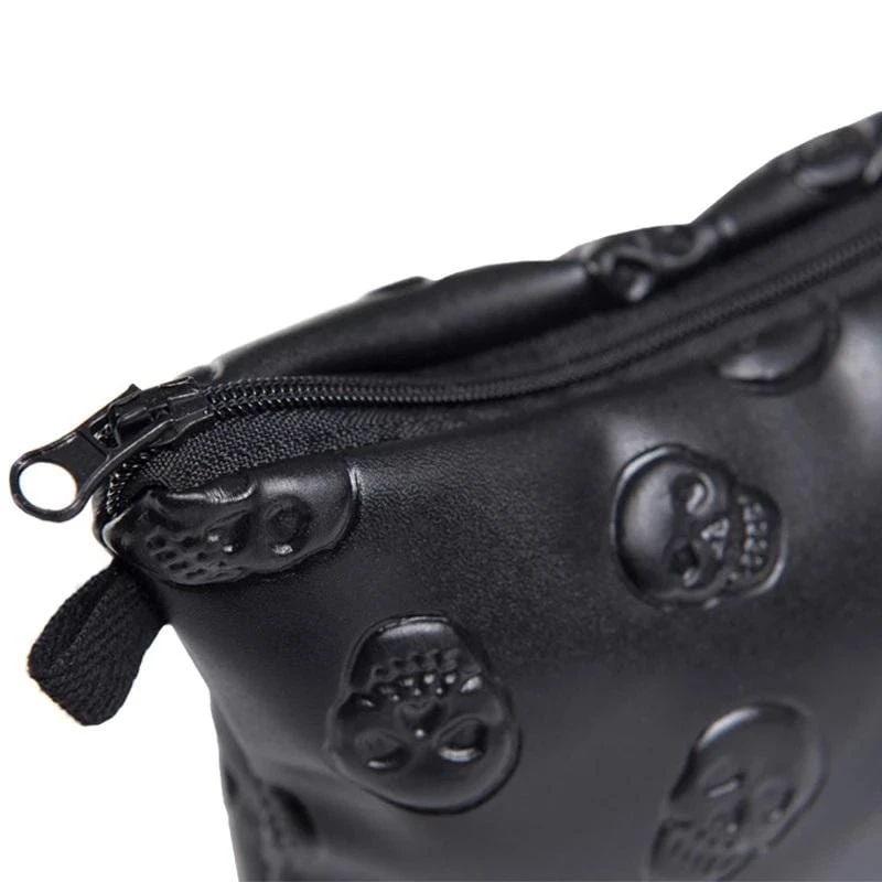 There is no limitation to being a gothic babe, you can use this Skull Scout Makeup Bag to carry out your favorite goth makeups and accessories where ever you go. This awesome cosmetic travel bag is made with high-quality PU leather which is printed with a 3D skull design.