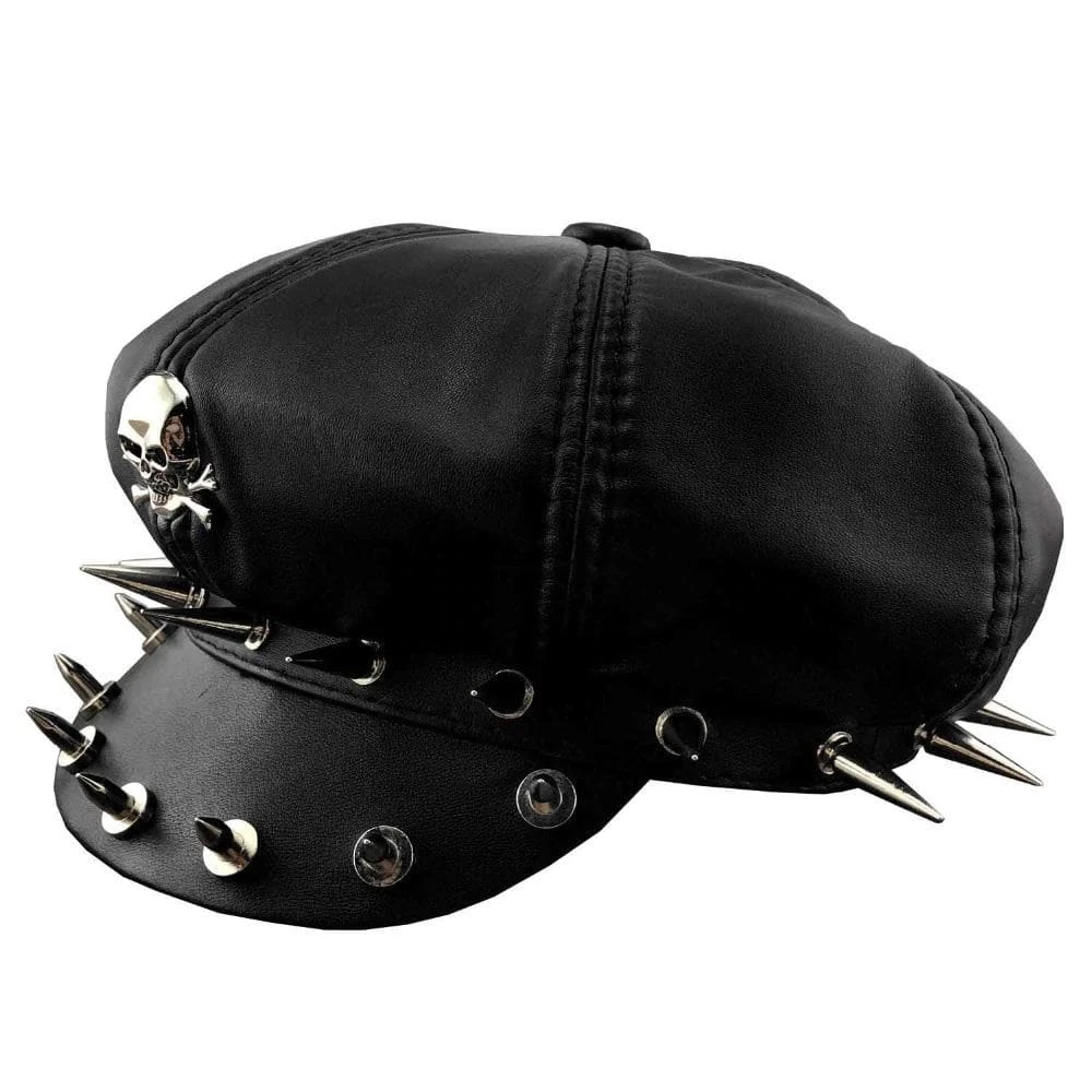 Make the best ride of your life in this Steampunk Biker Skull Hat. This dramatic hat features a cool punk rock type of style with attached metal spikes and a death skull making a badass look.