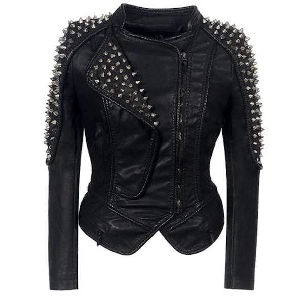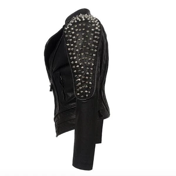 The Studded Leather Moto Jacket is an essential for your alt wardrobe. Those studs are carefully placed to make you look like a baddie.Â
