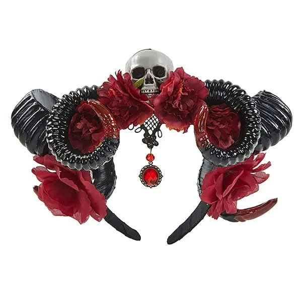 A Gothic statement piece for Halloween parties! Featuring retro horns and skulls, it adds a touch of macabre elegance to any costume. With big horn size of 12x13cm and small horn size of 7x9cm, it offers versatility in styling. Crafted from durable polyester, it ensures both comfort and durability. Perfect for completing your Halloween ensemble, this hair accessory is a must-have for any Gothic look.