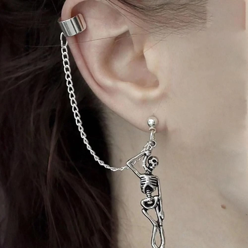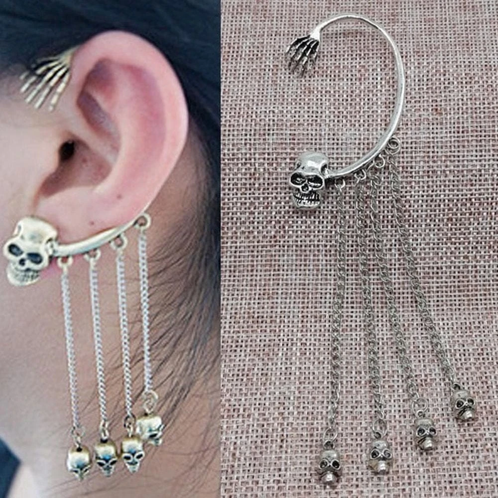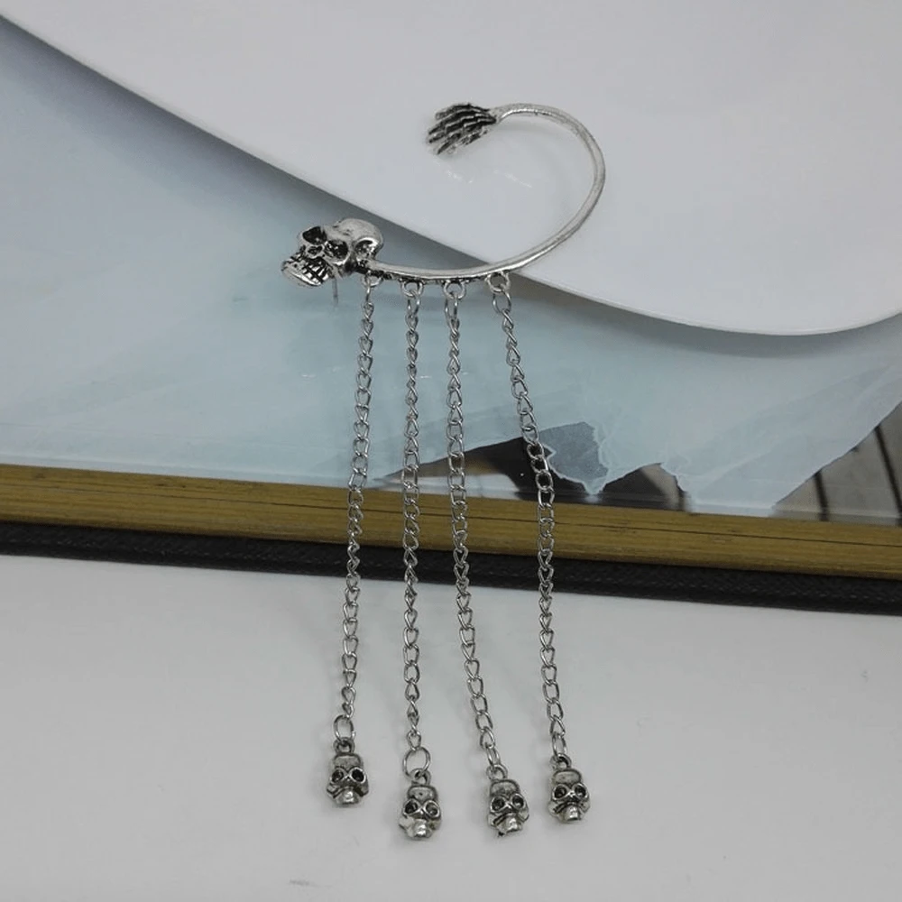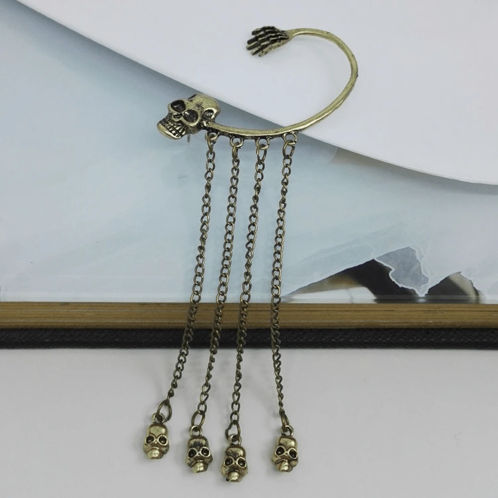 Make a statement with our Suicide Squad Long Tassel Earrings featuring an antique-silver/gold-finished body with statement skulls and adorned with a long chain.