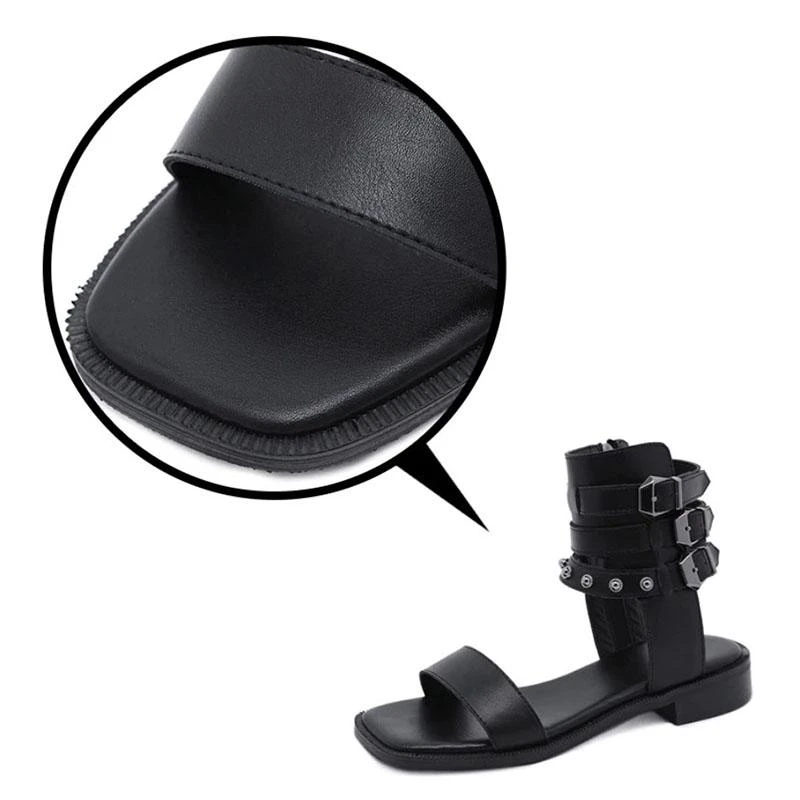 Tired of seeing women walking in those fetish shoes which look like they can cause a permanent spine damage? Wishing you could wear something trendy but actually comfortable? We present you the Summer Getaway Goth Sandals.Â