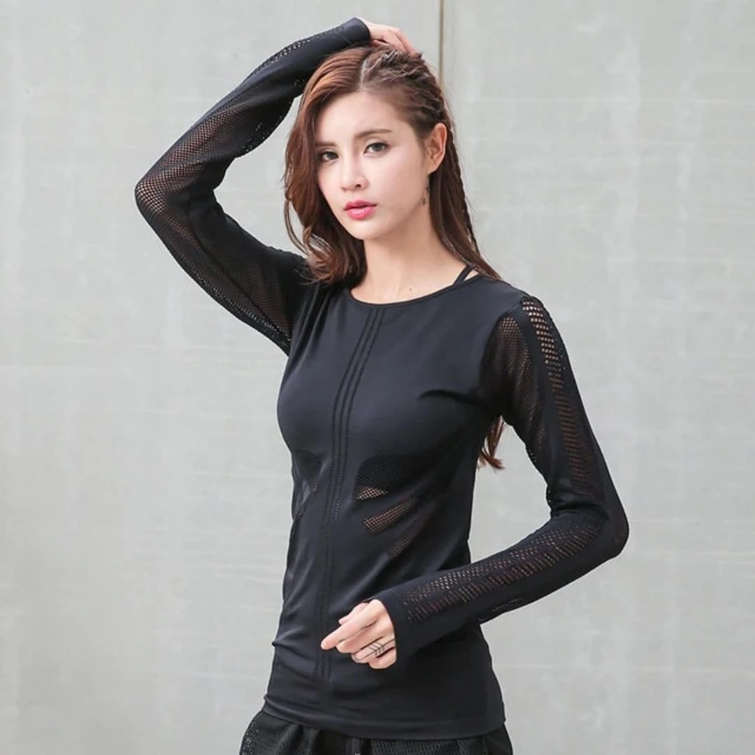 “Tear It Up” sport shirt will take things to the next level! This mesh long sleeve top has a soft and stretchable fabric, a boat neckline and a hollow out design oh so breathable.