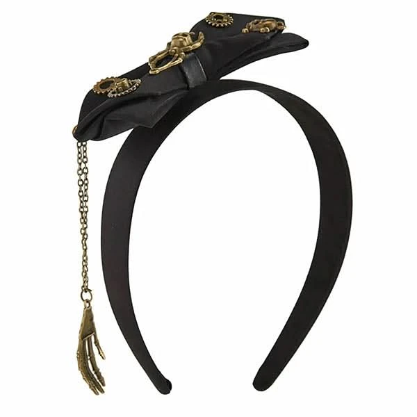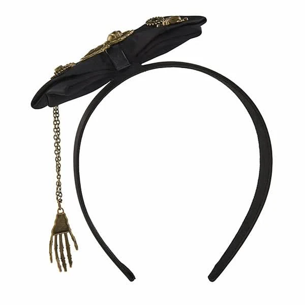 The perfect blend of punk and retro chic! Adorned with gears, skulls and spiders, it’s a statement piece for any occasion. Crafted from durable polyester, it offers comfort and style. Perfect for adding a touch of steampunk flair to your ensemble, this hair hoop is a must-have accessory for any Gothic look.