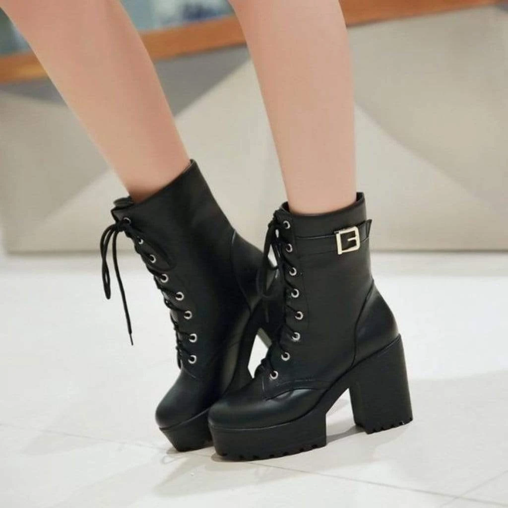 These dope boots feature a suuuper smooth soft PU leather construction, chunky treaded platform sole ‘N heel, side buckle design and classic martin lace-ups closure.