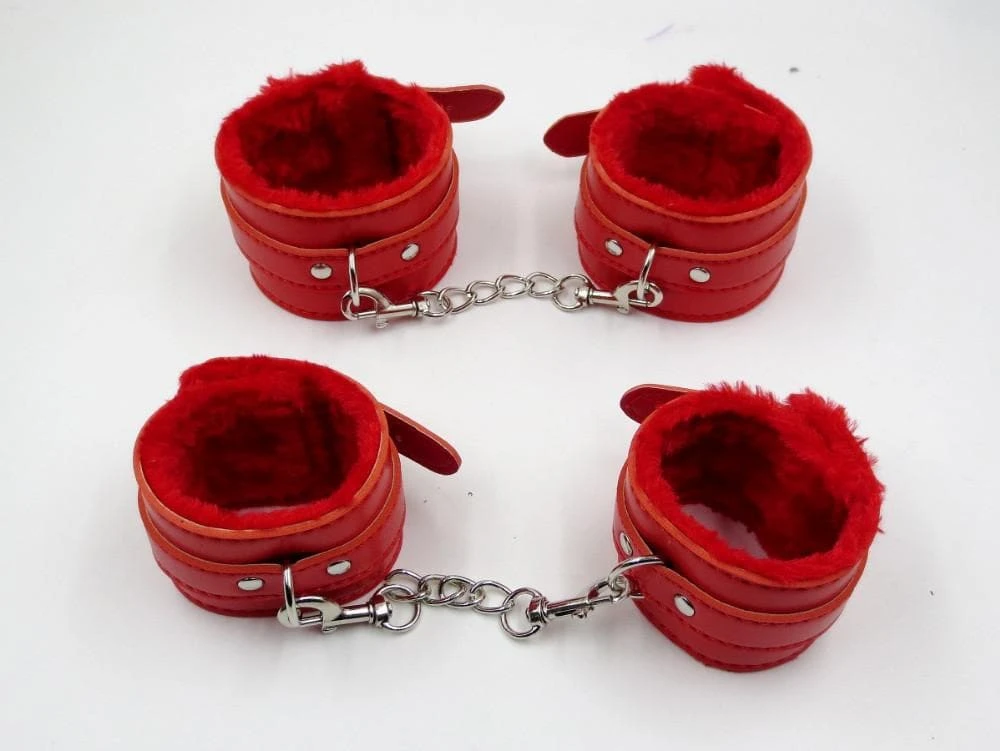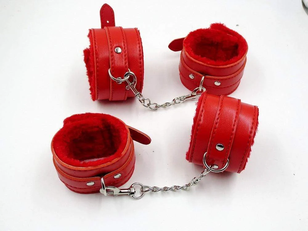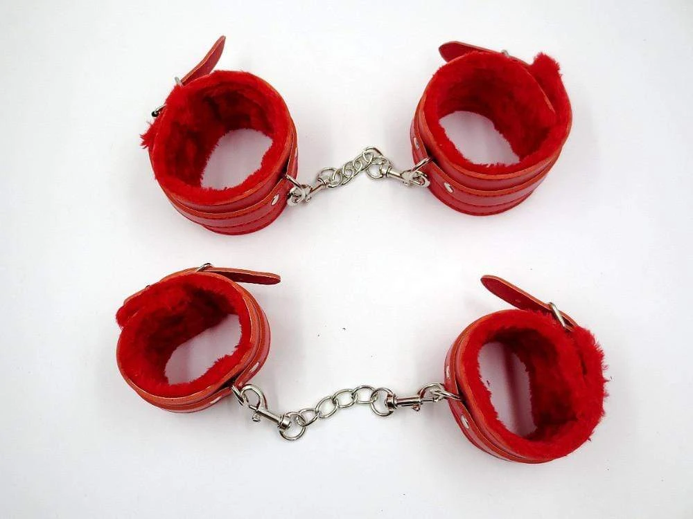 Size: 1 pcs leather hand cuffs + 1PCS ankle cuffs