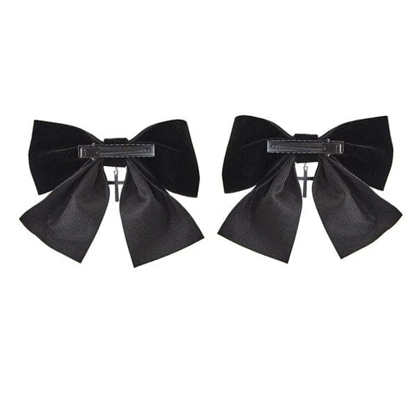 Dress your tresses up with these 2pcs ultra-cool Black Retro Velvet Bowknot Side Hairpins! Make a statement with these unique Gothic Lolita Gears Cross Barrettes and add a touch of vintage vibes to your hairdo! A great addition to your everyday look – rock it like a goddess!