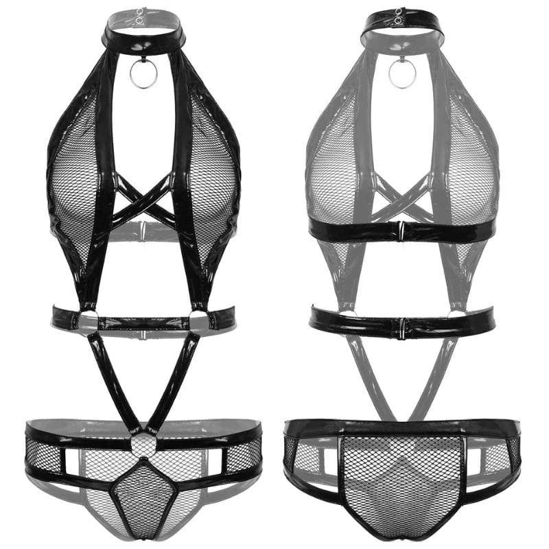 Will you let yourself go wild? The lustful “Venus” leather lingerie evokes your adventurous side with wet-look patent leather, totally wire-free hollow out fishnet cups, zipper crotch, hot and alluring. Made of soft and smooth, skin-friendly fabric, very comfortable and flirty to wear, show your charming curved body. Back with snap closure for a secure fit.