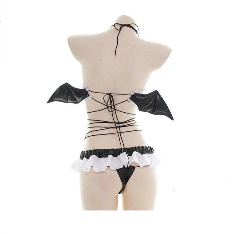 Bring out all the demons alive in your soul through this Voluptuous daemonette lingerie. Made with shiny leather material and giving you the bat wings, this wear screams all kinds of badass. Shine bright like a freaking diamond!