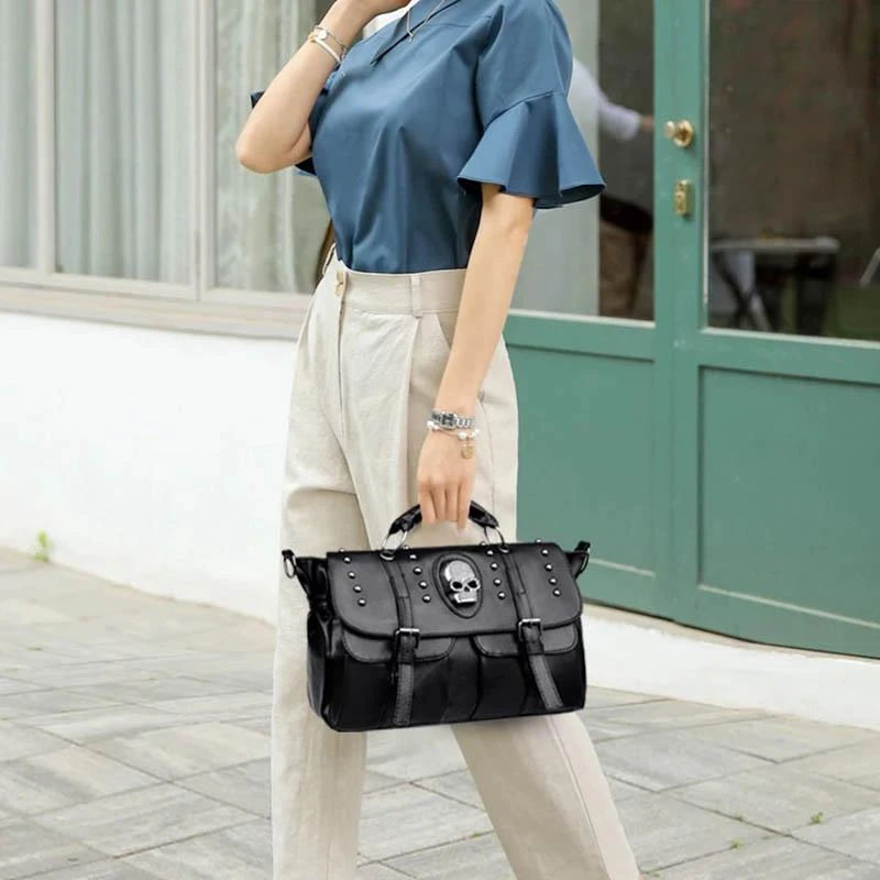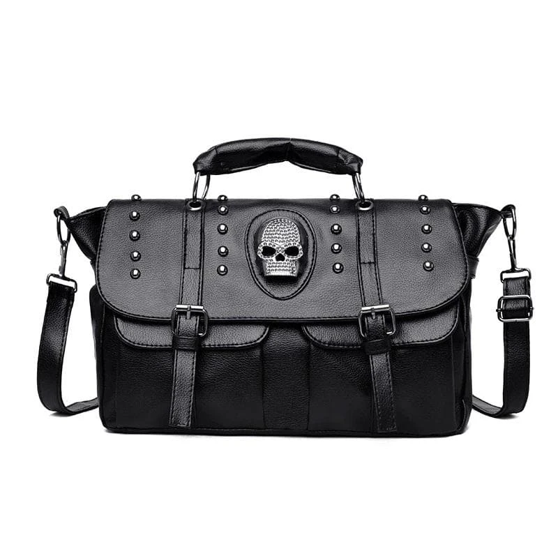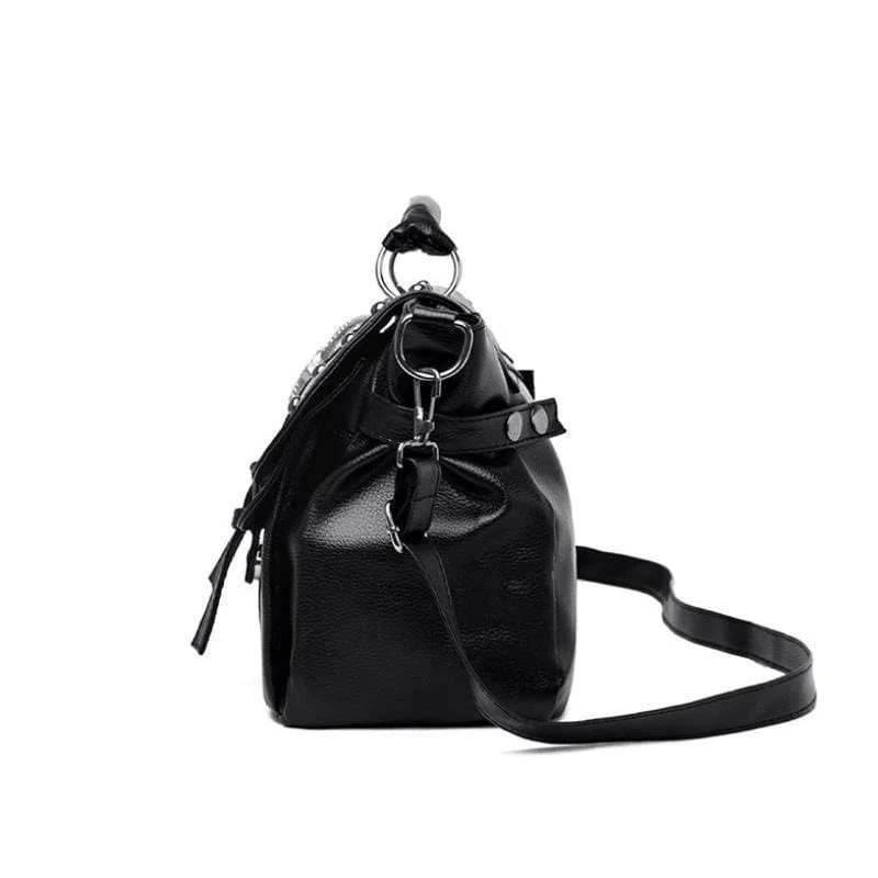 This Wicked Class bag is about to sweep you off the feet with its demonic, urban look. Truly a modern masterpiece, this bag has a skull and is studded geometrically to give you an ultra high fashion aesthetic look.Â